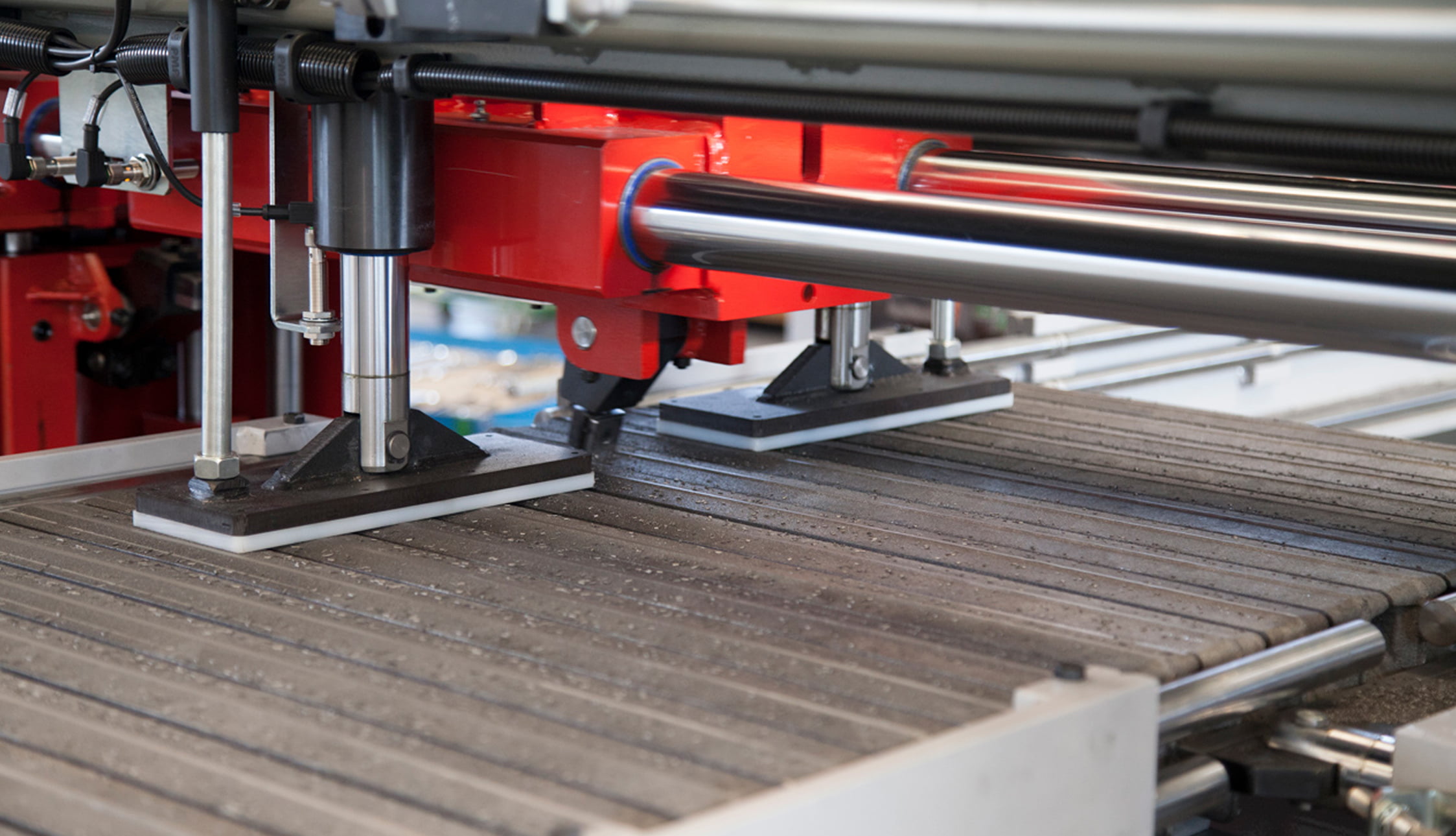 L'intera linea, a comando oleopneumatico, è corredata di tutti i dispositivi di intervento necessari nelle singole fasi e lavora automaticamente con movimenti sincronizzati in sequenza logica, secondo un programma computerizzato operante nella centrale di comando.