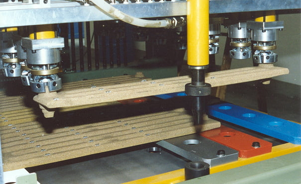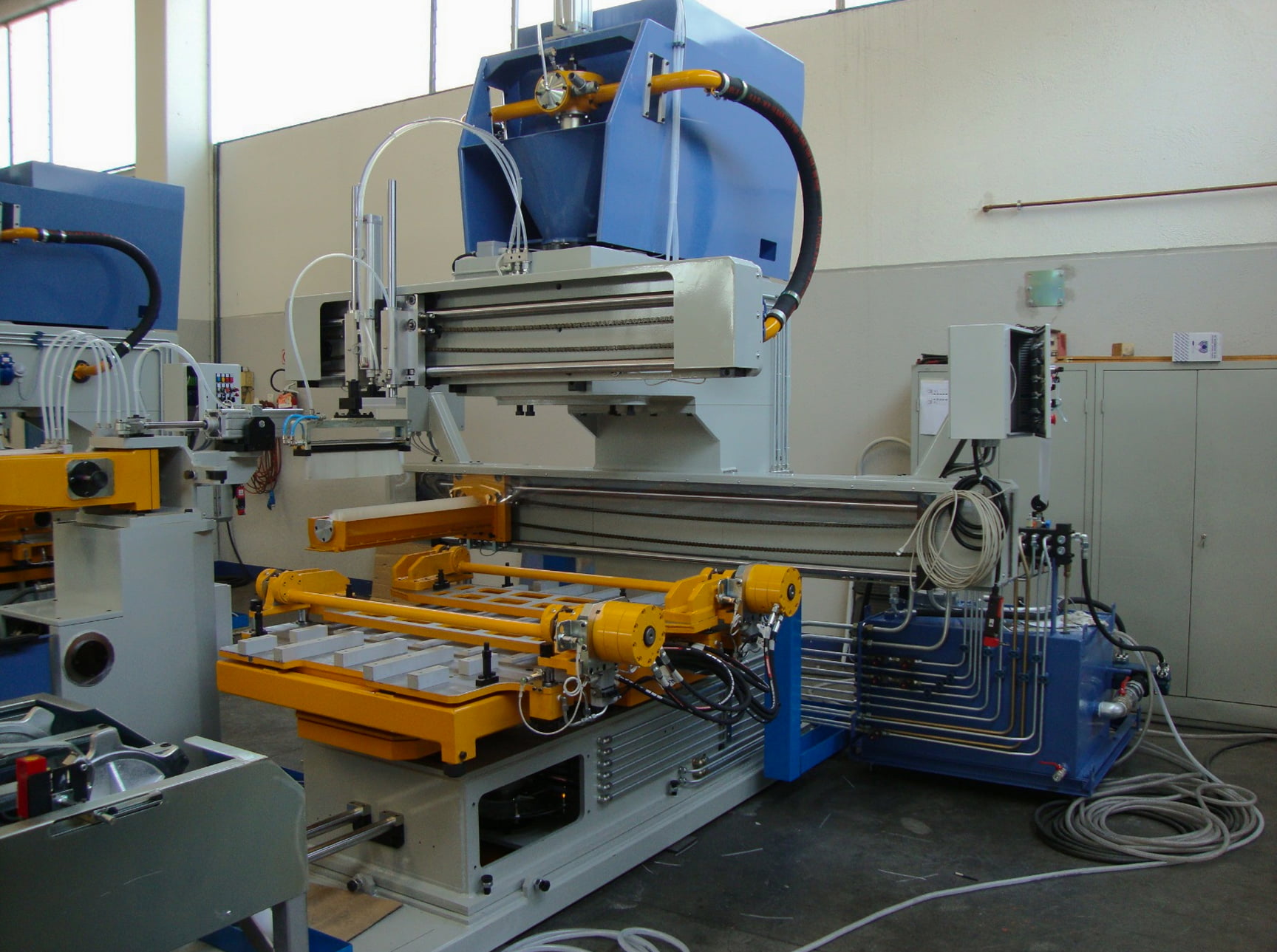 L'intera linea, a comando oleopneumatico, lavora automaticamente con movimenti sincronizzati in sequenza logica, secondo un programma computerizzato operante nella centrale di comando.
